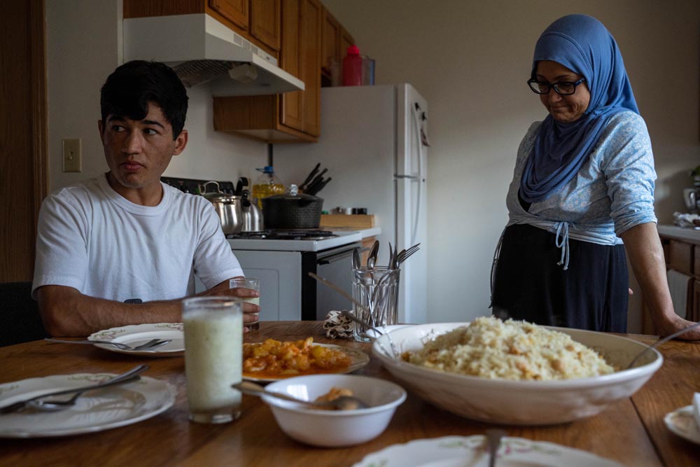 “There are a lot of differences between here and over there,” Farida says, referring to how it is typical for multiple generations to live together in Afghanistan. “Here, it is very hard for me by myself. I miss my big family, but my kids have a bright future, and that’s why I tolerate this hard life.”